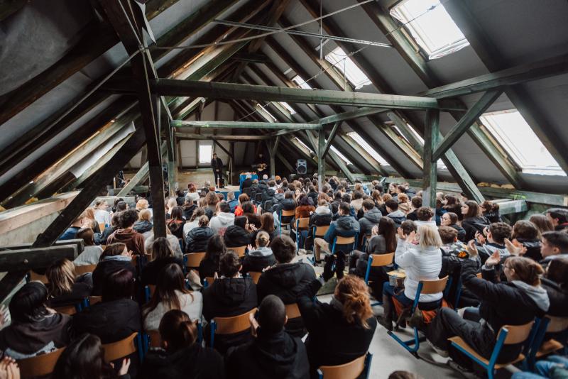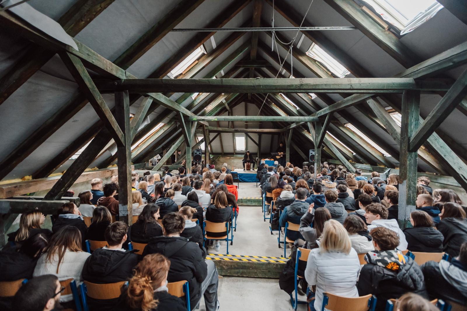 Az esemény egyedisége az volt, hogy az iskola nemrég kialakított tetőterében kapott helyet.