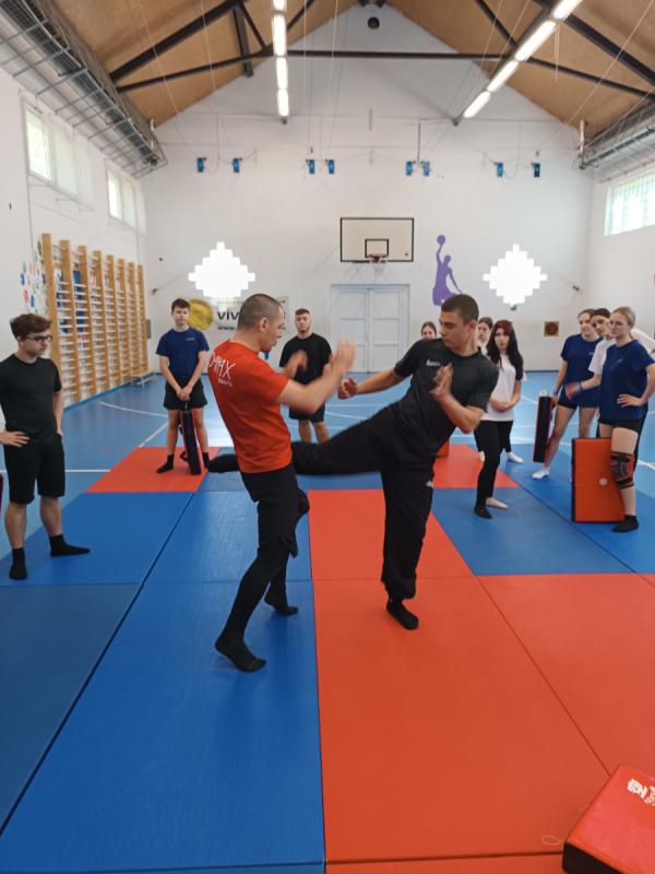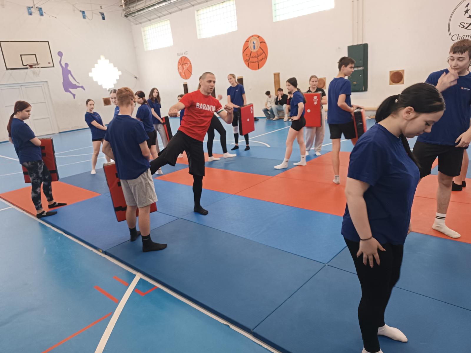 A TAM/KAD/2025/630 pályázat keretében valósult meg iskolánk honvéd kadétjainak a küzdősport képzése 2026. április 20-án. Bereczky Bence katonaoktató, az Alföldi Szabadidő Egyesület elnöke tartott egy jó hangulatú, játékos alkalmat, melyben a tanulók többek között megismerkedhettek az alapütések, - rúgások, - kézszorítások és szabadulások technikáival, valamint a biztonságos esések és az önvédelem alapvető szabályaival.
