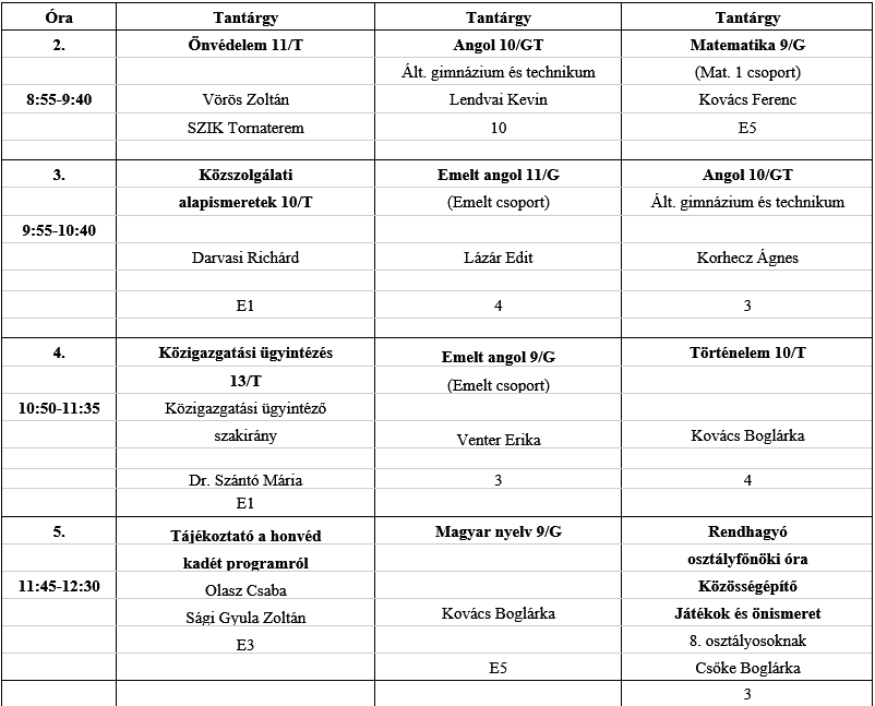 8:50-ig érkezzenek meg a kiválasztott óra tantermébe, akik az első órára regisztráltak.