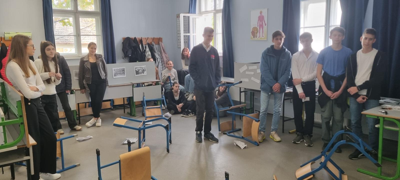 Tanulóink napról napra egyre nagyobb lendülettel vetették bele magukat a kidolgozásba, így sikerült rendhagyó, de méltó módon megemlékezni az 1956-os forradalomról.