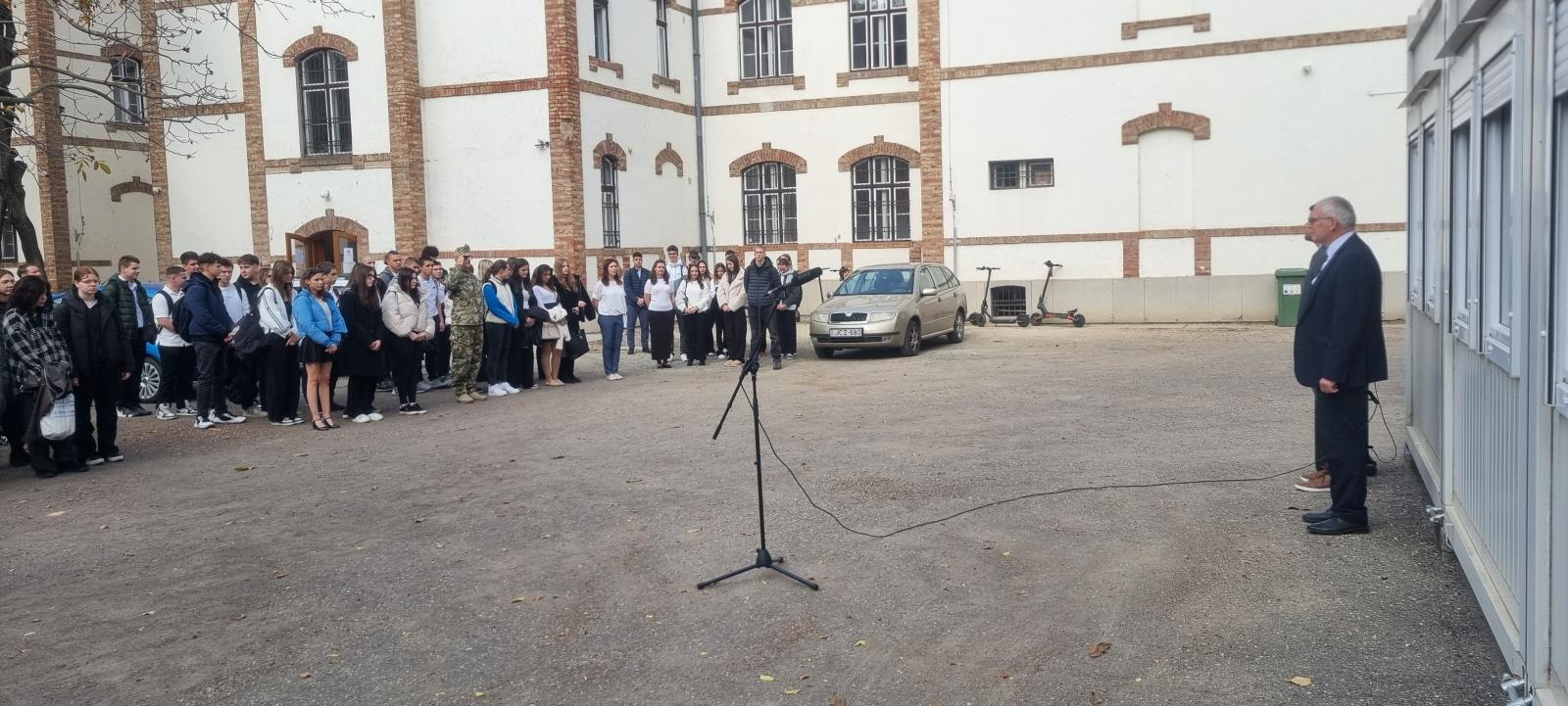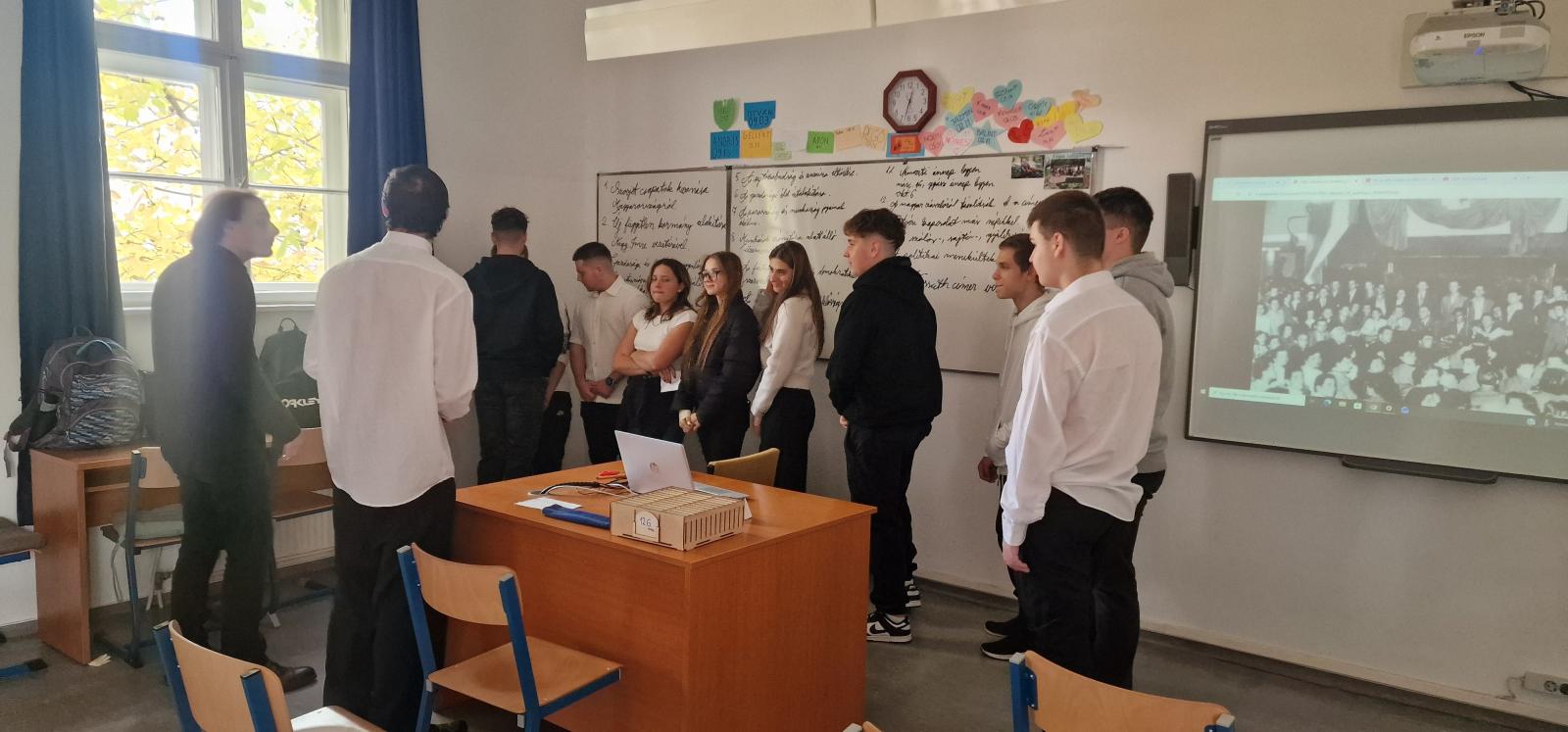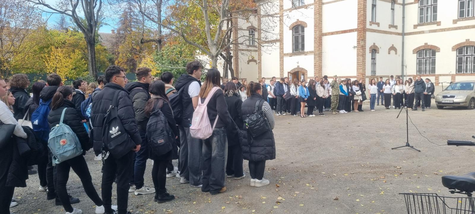 2025. október 22-én iskolánk megtartotta október 23-i megemlékezését. Intézményünkben szeretjük az újfajta, rendhagyó megoldásokat, amelyekben diákjaink kibontakoztathatják tehetségüket, fantáziájukat. Így ebben az évben minden osztály egy-egy napot, helyszínt mutatott be interaktív módon a saját termében. A termeket körbejárva, a bemutatókat meghallgatva, megtekintve ismerhették meg diákjaink a szegedi és vidéki eseményeket, a forradalom kitörését, jelentősebb eseményekkel bíró napokat. Betekintést nyerhettek a forradalmárok mindennapjaiba, harci tevékenységeibe, valamint a megtorlás kegyetlen, rideg valóságába. A megvalósítás folyamán a fantázia szabadon szárnyalhatott, így volt, aki szabadulószobát állított össze, tehettek rendhagyó sétát a szegedi és a budapesti helyszíneken az osztálytermeken belül, míg a megtorlás eseményeit látványosan, de ugyanakkor hátborzongatóan berendezett termen keresztül ismerhették meg diákjaink.
