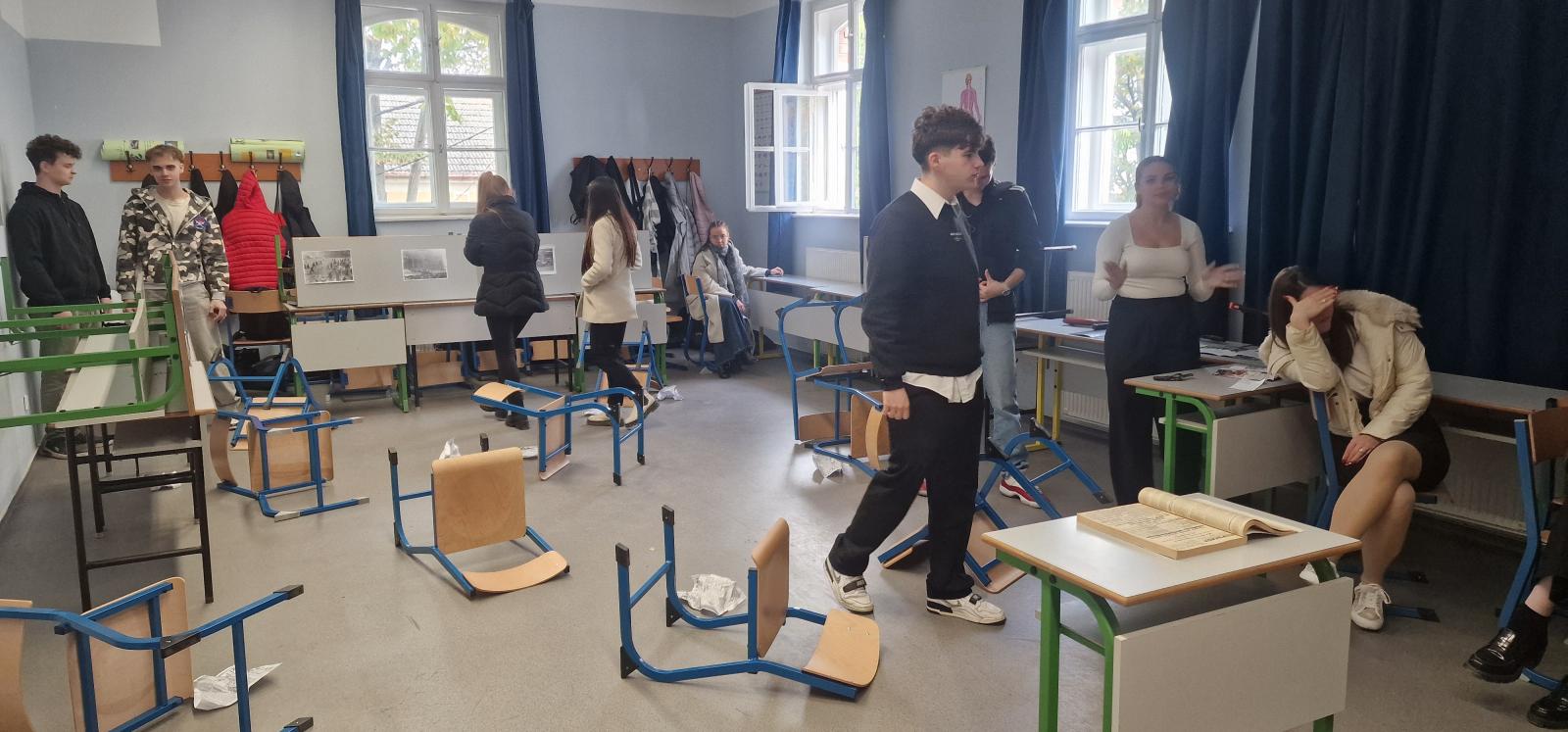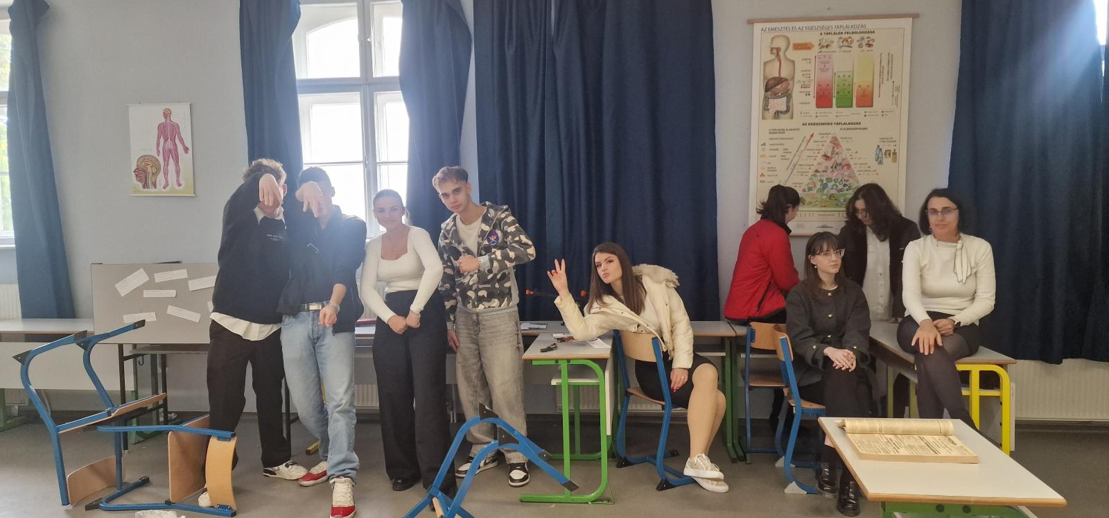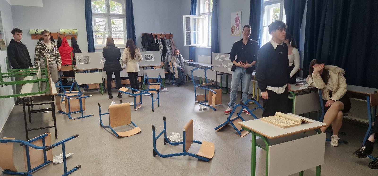 2025. október 22-én iskolánk megtartotta október 23-i megemlékezését. Intézményünkben szeretjük az újfajta, rendhagyó megoldásokat, amelyekben diákjaink kibontakoztathatják tehetségüket, fantáziájukat. Így ebben az évben minden osztály egy-egy napot, helyszínt mutatott be interaktív módon a saját termében. A termeket körbejárva, a bemutatókat meghallgatva, megtekintve ismerhették meg diákjaink a szegedi és vidéki eseményeket, a forradalom kitörését, jelentősebb eseményekkel bíró napokat. Betekintést nyerhettek a forradalmárok mindennapjaiba, harci tevékenységeibe, valamint a megtorlás kegyetlen, rideg valóságába. A megvalósítás folyamán a fantázia szabadon szárnyalhatott, így volt, aki szabadulószobát állított össze, tehettek rendhagyó sétát a szegedi és a budapesti helyszíneken az osztálytermeken belül, míg a megtorlás eseményeit látványosan, de ugyanakkor hátborzongatóan berendezett termen keresztül ismerhették meg diákjaink.